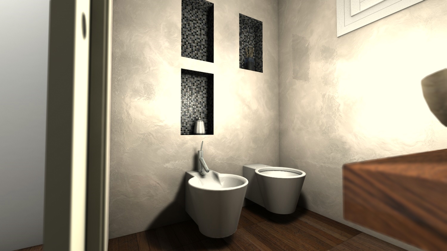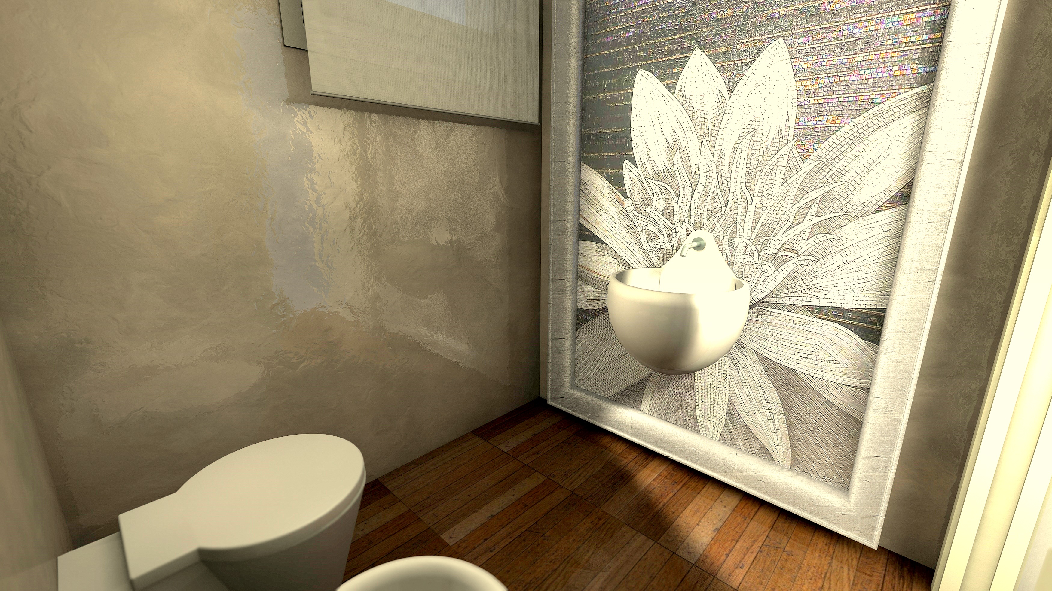 le pareti sono lucide perchè saranno realizzate in resina. purtroppo l'ultima parola ce l'ha il cliente :)