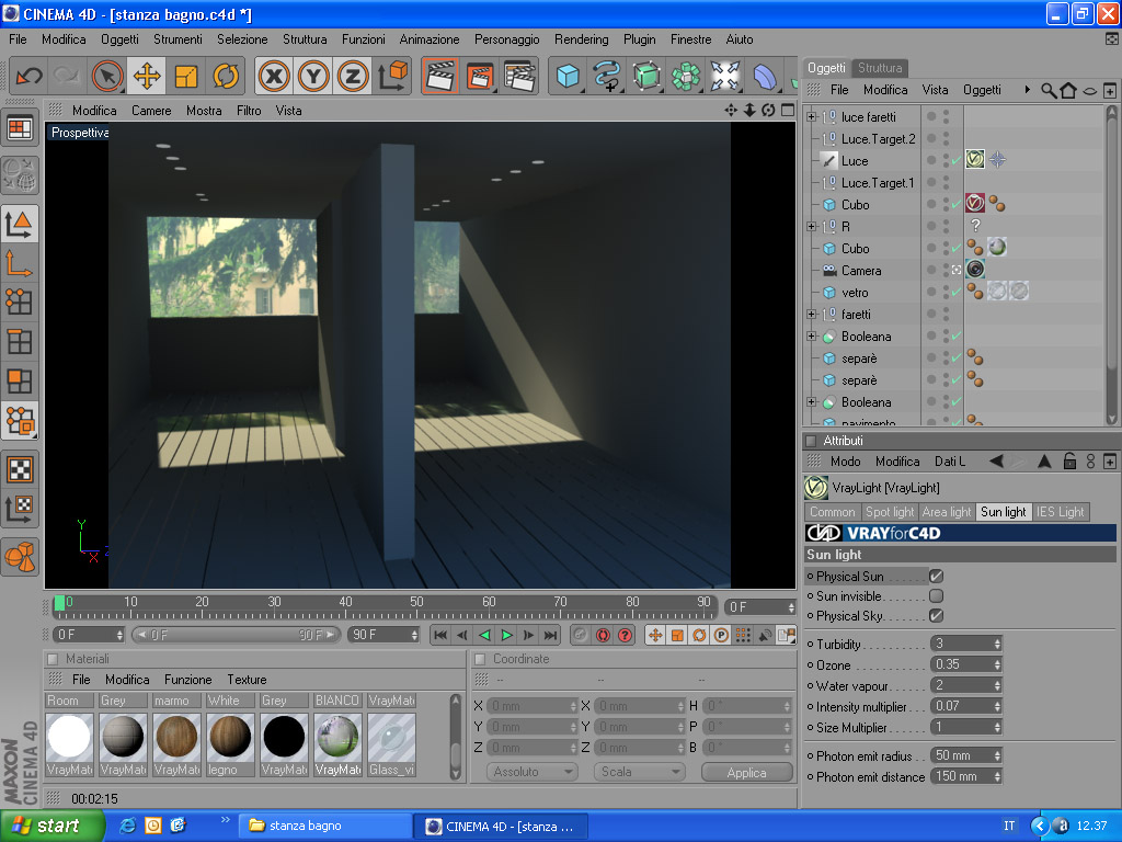 Vorrei fare un bagno e ho messo una luce sun tramite una luce infinita e applicato physical sun e physical sky ma non mi viene quella luce netta con giochi d'ombra, il vetro ha attivo l'effect alpha e nella GI è attivo refractive. Inoltre ho tolto la parete frontale perchè pur deselezionando camera visibility in vray compositing vedo tutto nero e ho la camera dell'editor come vista (perchè se metto la vista dalla camera da me impostata mi fa vedere tutto nero9