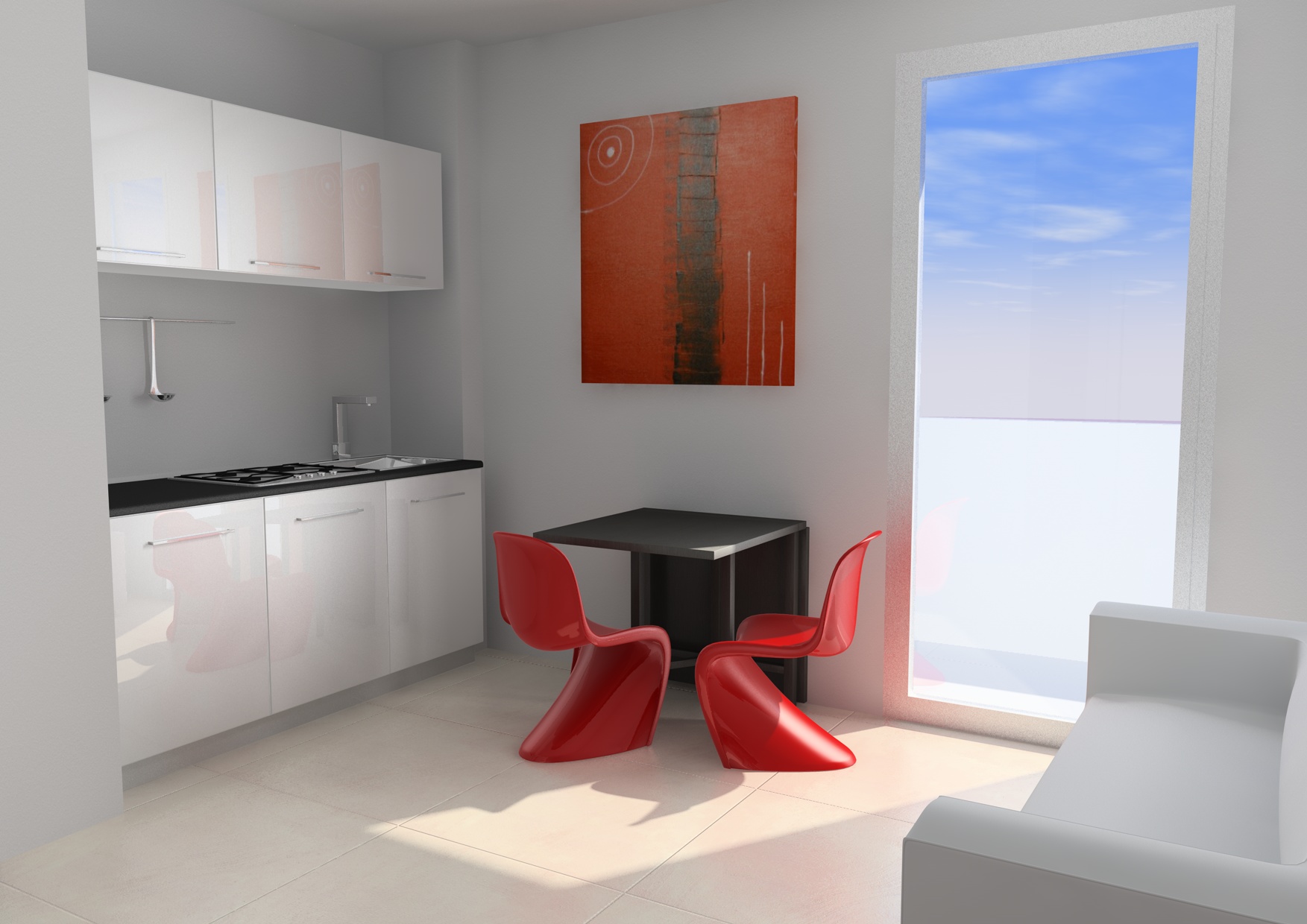 questo è il render che ho mandato sta mattina, non ancora con tutti i materiali, ed alcuni decisamente da rivedere, se non da sostituire come quello del lavello che in accaio inox non mi convince...