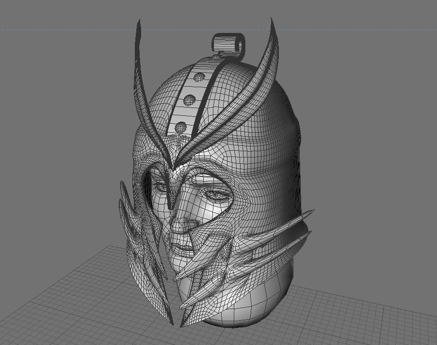 Ho eliminato i baffi , chiuso il foro e ricreato i baffi utilizzando estrudi matrice e questo è quello che mi è uscito , ho modificato anche la parte alta dell'elmo :)