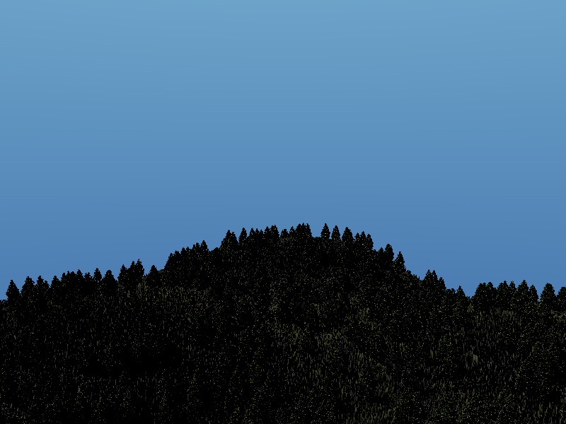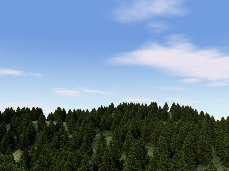 aggiungendo un generatore di capelli per ogni specie di alberi che ti serve puoi generare degli interessanti livelli di vegetazione. non ho mai provato ma credo si possa vincolare la cosa anche in base alla topologia della superficie, di sicuro si può fare una piantagione shader based.