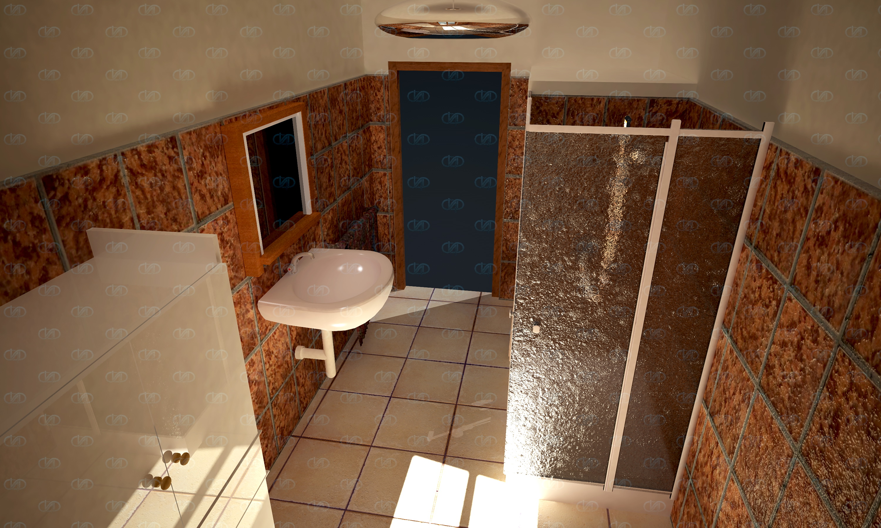 eccovi un esempio di interno ..la scena è stata creata apposta senza troppi elementi di oggetto..con un studio delle texture abbastanza semplice..con il vetro della doccia da rivedere..ho voluto dare piu importanza allo studio delle impostazioni e delle luci
