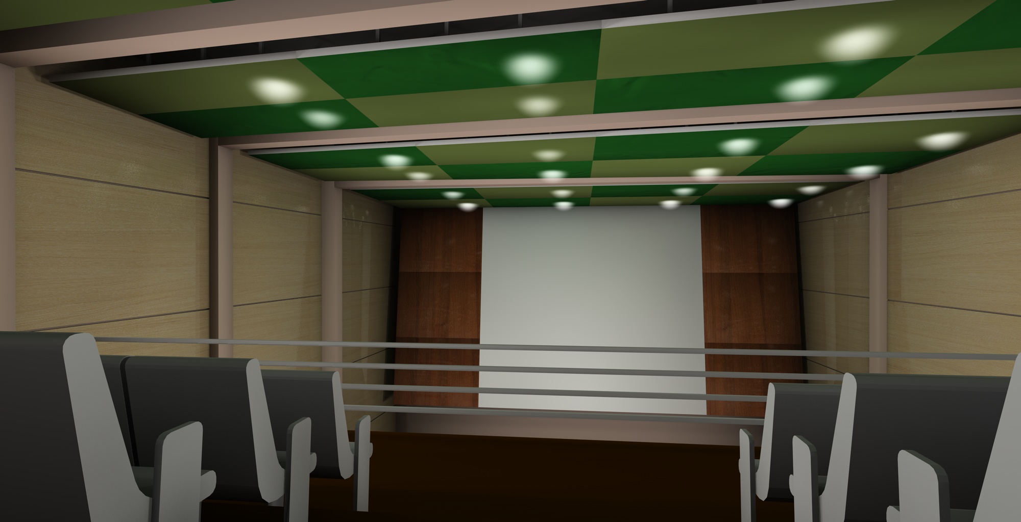 1) il cinema va renderizzato mentre va in proiezione un film (quindi sala buia con l'unica luce data dalla proiezione), oppure va renderizzata con le luci della sala accese?