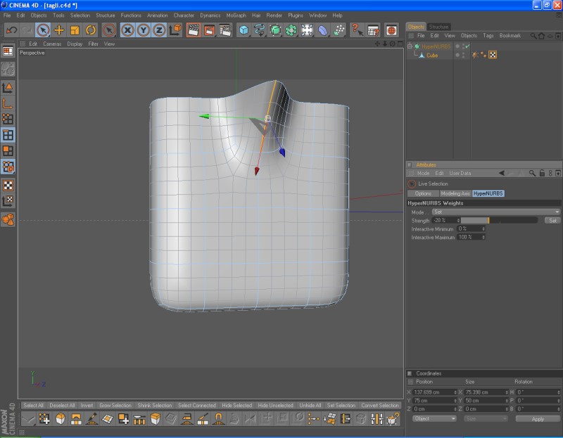 dai dei tagli e fai il beccuccio ... se è il caso puoi settare il peso dell'hipernurbs per ottenere linee piu o meno marcate
