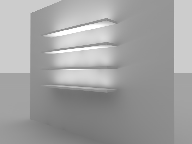 Però se tengo il raggio della decadenza alla dimensione del rettangolo-area(come nell'esempio di nexzac) l'alone di luce nel punto centrale mi arriva al soffitto, quindi non mi va bene lo stesso perché quello che voglio io è proprio una striscia uniforme di luce (come in quella foto delle borse).