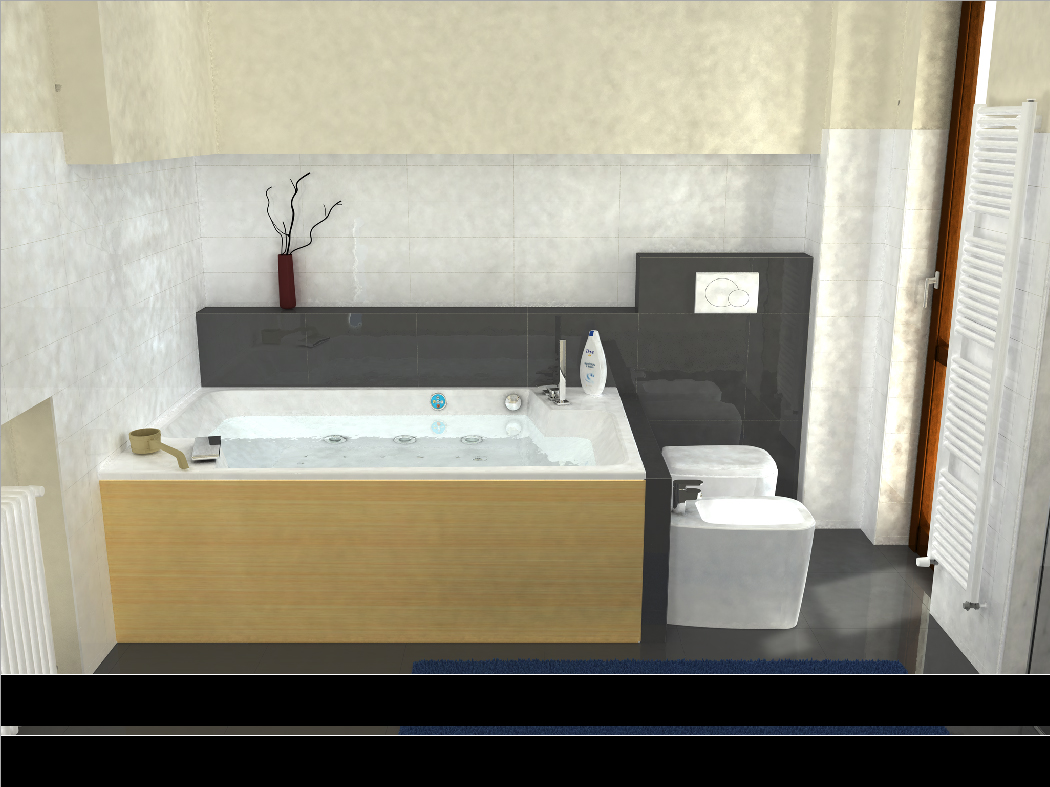Questa volta si tratta di un rendering di un bagno, GI 330%, precisione 90%, dimensione prepass 1/2, risol min 60 ,risol max 600