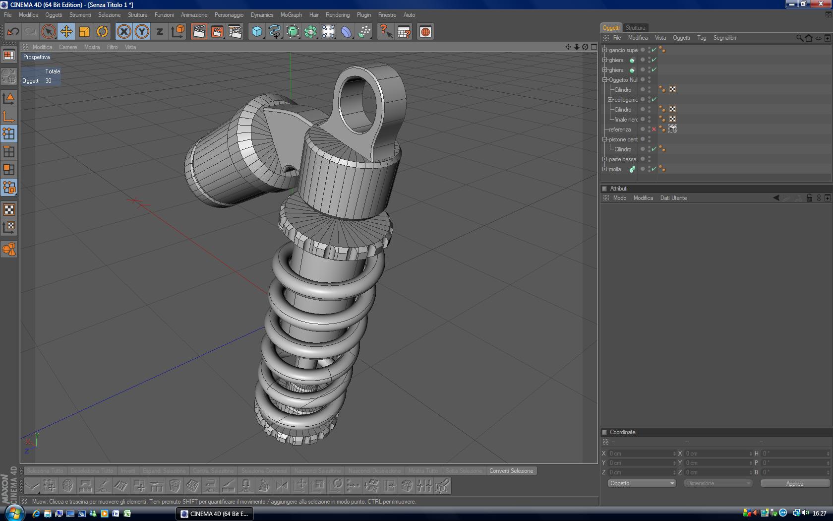 Ciao a tutti..il mio viaggio verso la conoscenza dei comandi di cinema 4d procede con vari tipi di lavoretti semplici semplici..oggi volevo creare l'ammortizzatore dell'immagine allegata..ma ho un problema..la parte che ho cerchiato in rosso..come faccio a crearla? cioè qual'è il miglior modo per procedere? crearla poligono per poligono?oppure fare 2 cilindri e poi unirli?