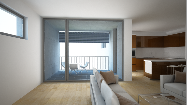 secondo me l'area la devi mettere all'inizio della loggia dove effettivamente comincia ad entrare la luce... nel tuo caso hai la loggia più scura dell'interno, in realtà è il contrario...