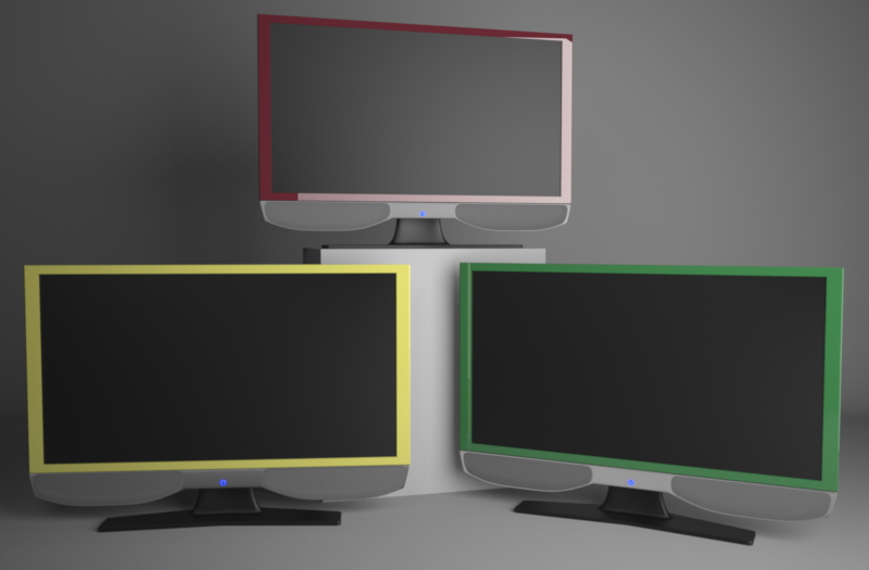 Per ora ho fatto queste prove in multilight con un set curvo come sfondo un cubo sul quale è il televisore rosso e due luci a pannello uno 200x200 sulla destra e uno 100x100 sulla sinistra/centro.