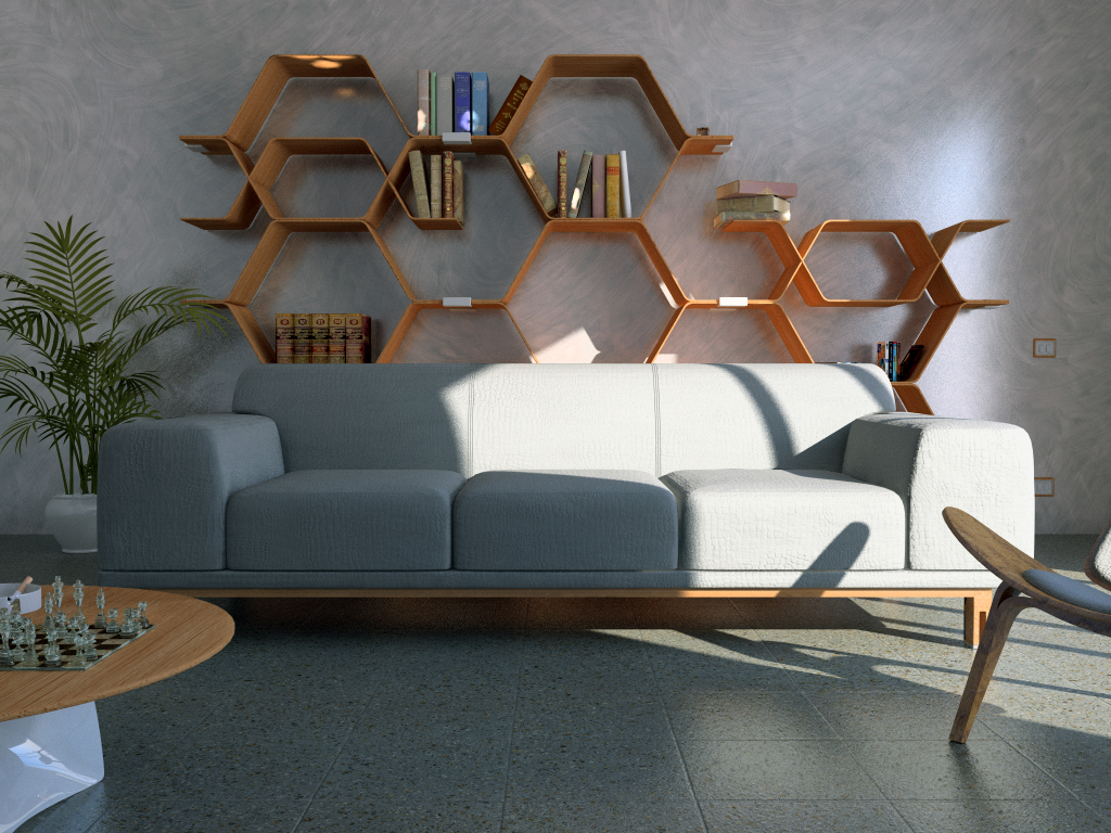 Bella complimenti.... io xò non illuminerei mai un salotto così(considerazione personale)... se è quello il soggetto del lavoro. Lo vedo un pò troppo rigido... Sembra come se tra legno e stoffa non ci sia la spugna.