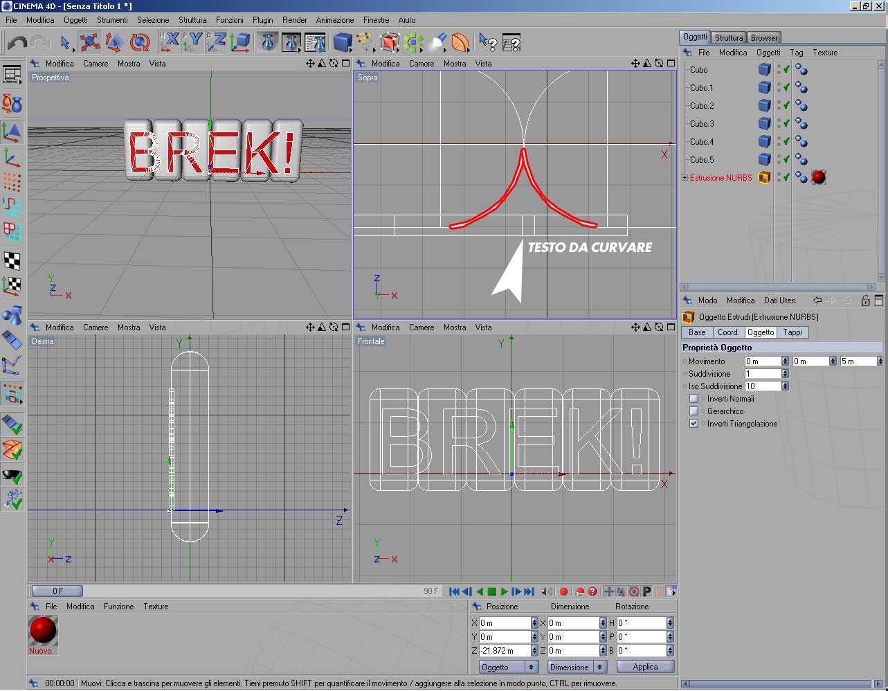 allora, se usi il testo con la nurbs estrusa, scordati di piegarla, si distruggono i tappi...e viene una schifezza...