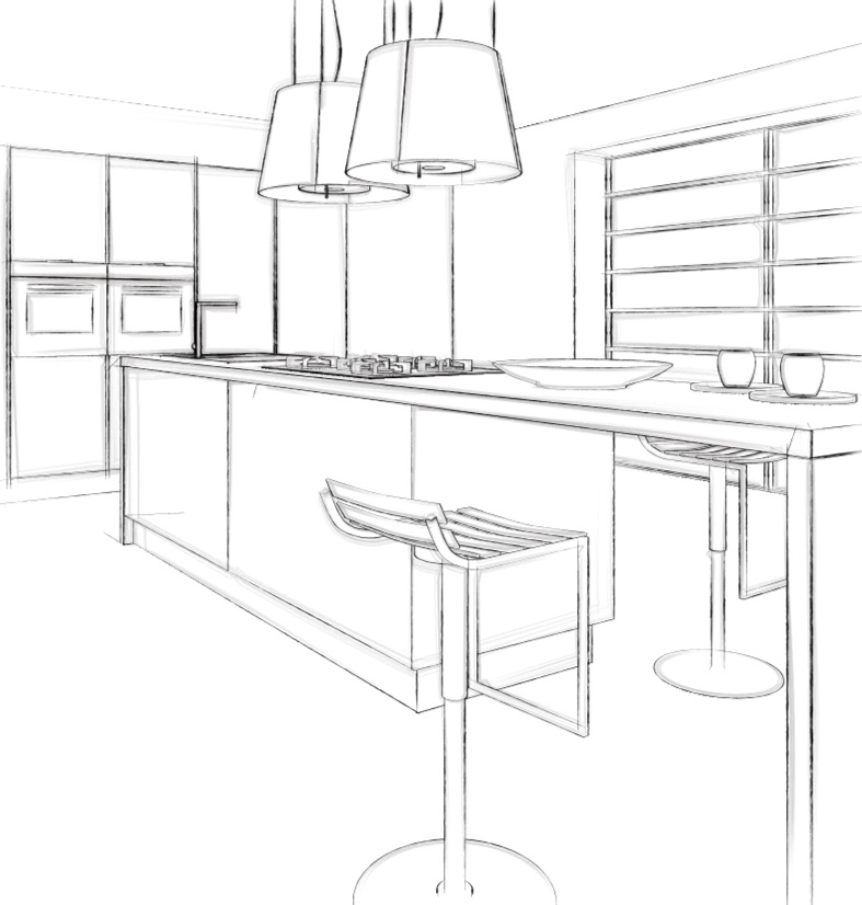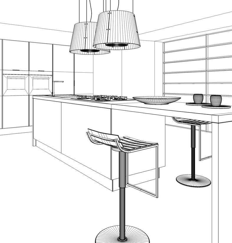 sfogliando una rivista ho preso spunto per qualche immagine, in questo caso ho iniziato a riprodurre una fotografia di questa cucina, sperando di avvicinarmi il più possibile all'originale...