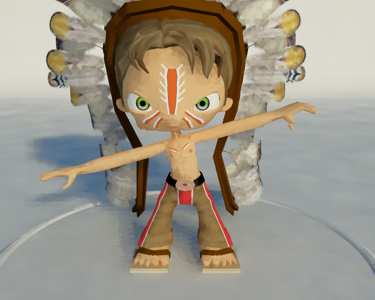* ho provato con un piano 2d che seguiva la fascia.. poi mappandolo di piume ma usciva na' schifezza quindi ho fatto diversi piani 2d piegati e texturizzati + canale alpha...
