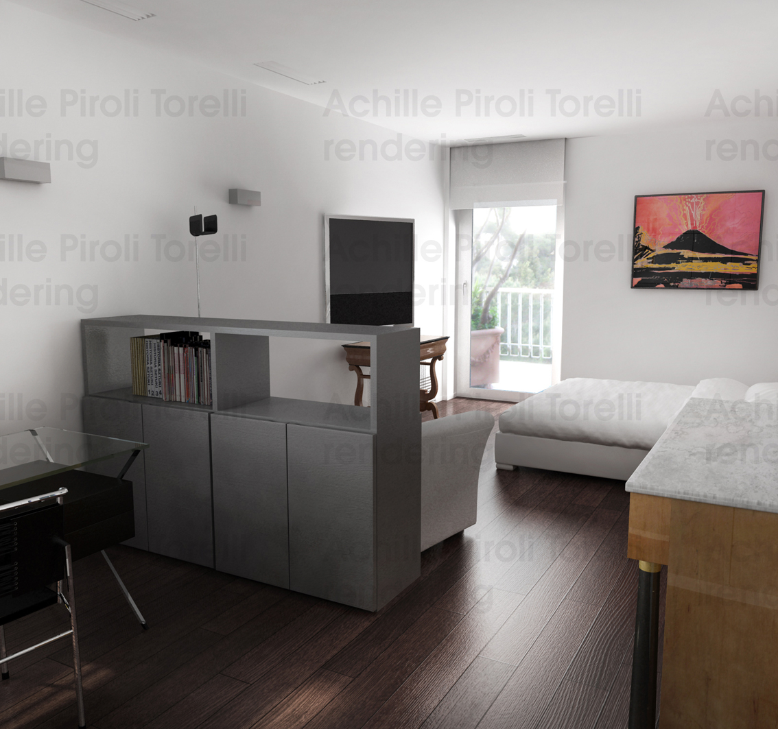 si tratta di un appartamento abbastanza grande per adesso ho modellato e renderizzato il salone , pranzo e letto, seguiranno (probabilmente ) cucina e soggiorno/terrazzo.