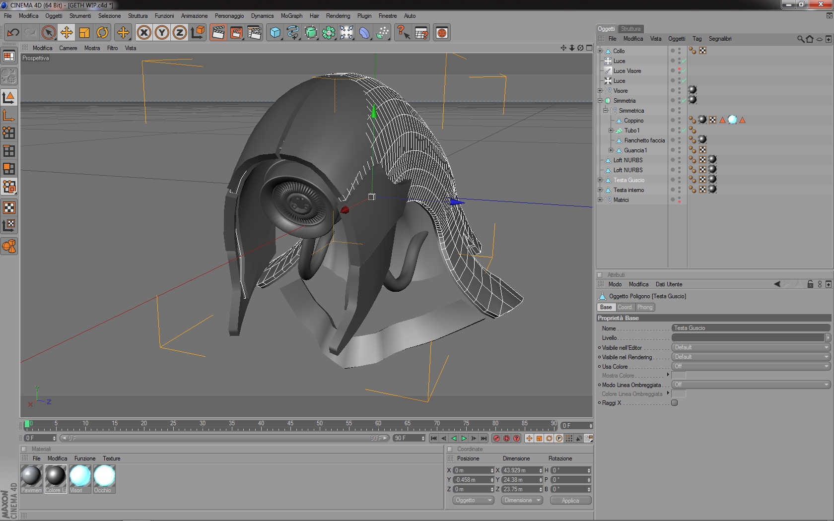 L'ultimo elemento della faccia fatto ovvero la calottina frontale che poi andrebbe animata insieme ai fianchetti.