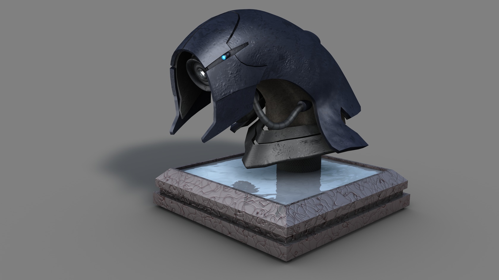 poi ho creato un paio di materiali per la pelle del collo e i tubi e ho fatto un renderino, immaginando la testa del GETH come un trofeo.