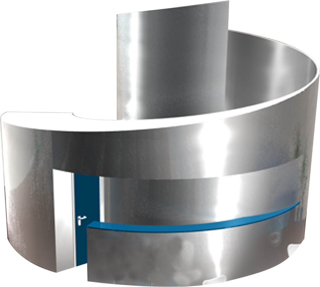 metti una primitiva ellisse (che poi sono spirali!!! mah!) e modellala in pianta in modo che coicida con un bordo (interno o esterno) del muretto a spirale. Poi fanne una copia e dagli altezza zero. Rendile modificabili ed usa crea contorno per fare lo spessore del muretto; poi mettile in una loft nurbs, in modo che quella ad altezza zero sia la base e l'altra la parte superiore a spirale. Poi come dice il nostro Andi puoi usare le booleane per bucare.