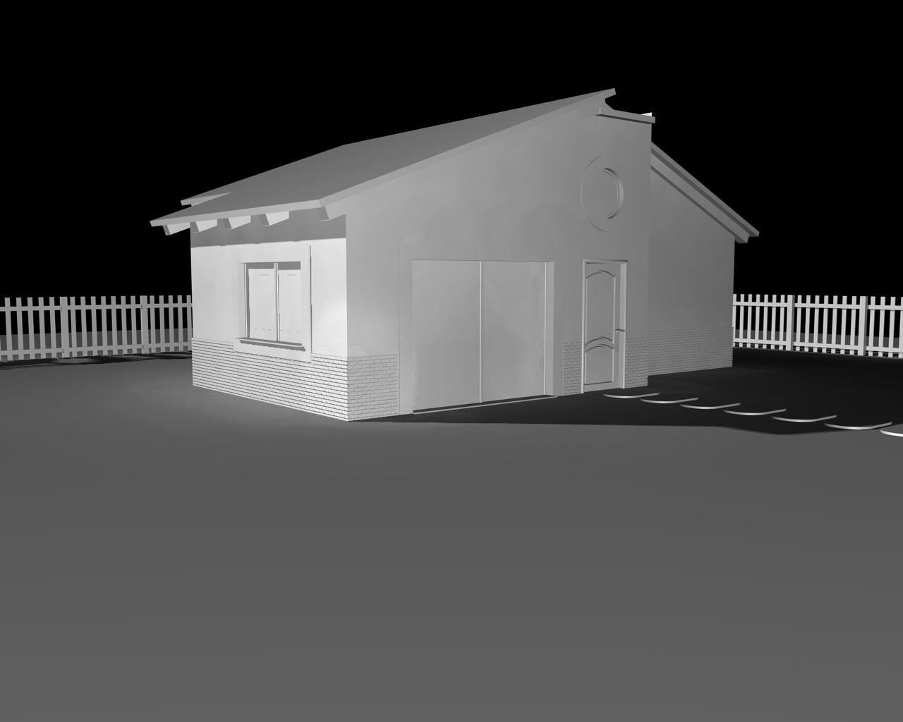 Adesso ho solo una luce infinita che proietta ombre area e una luce area che illumina la facciata con la porta di ingresso,con decadenza lineare..per il momento,visto che sto solo facendo delle prove non ho ancora inserito la G.I. :)