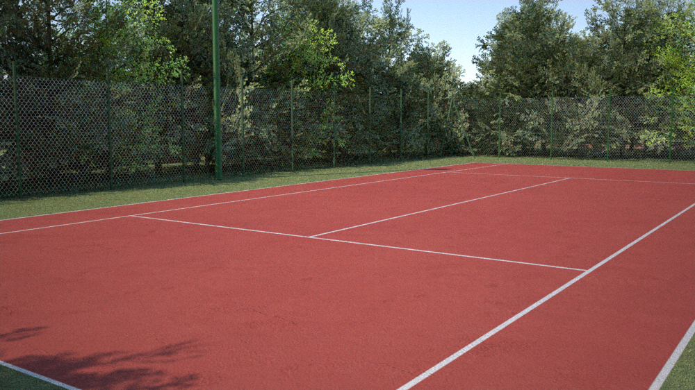 Guarda la scena è un campo da tennis circondato da alberi (tra poco posto un rend.),