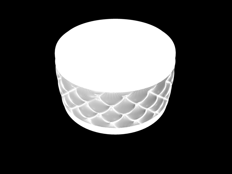 allora, in questo oggetto io ho usato una hypernurbs, al cui interno sono inserite le geometrie riguardanti il cilindro centrale, per capirci quello effetto chester, le parti restanti dell'oggetto, vale a dire la parte superiore ed inferiore, non stanno dentro hn.