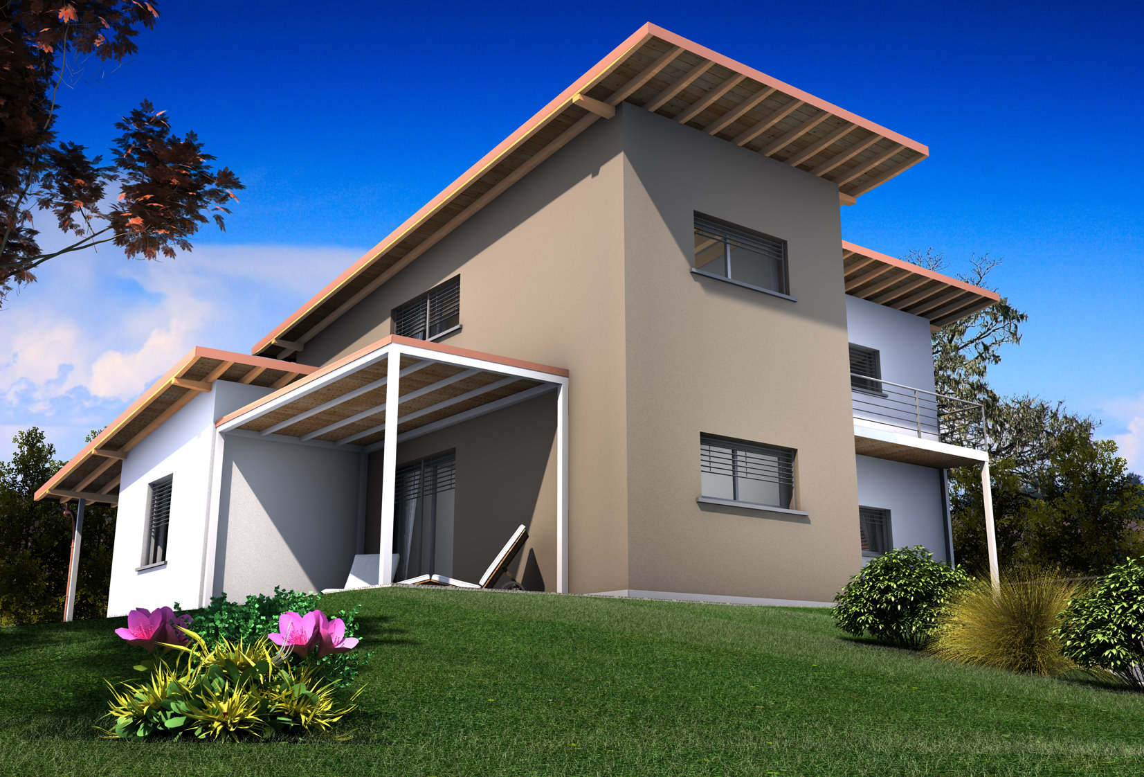 ciao ragazzi, ho progettato questa villa e ora devo fare qualche rendering. allego queste due immagini e ditemi cosa poter migliore (a parte i cespugli).