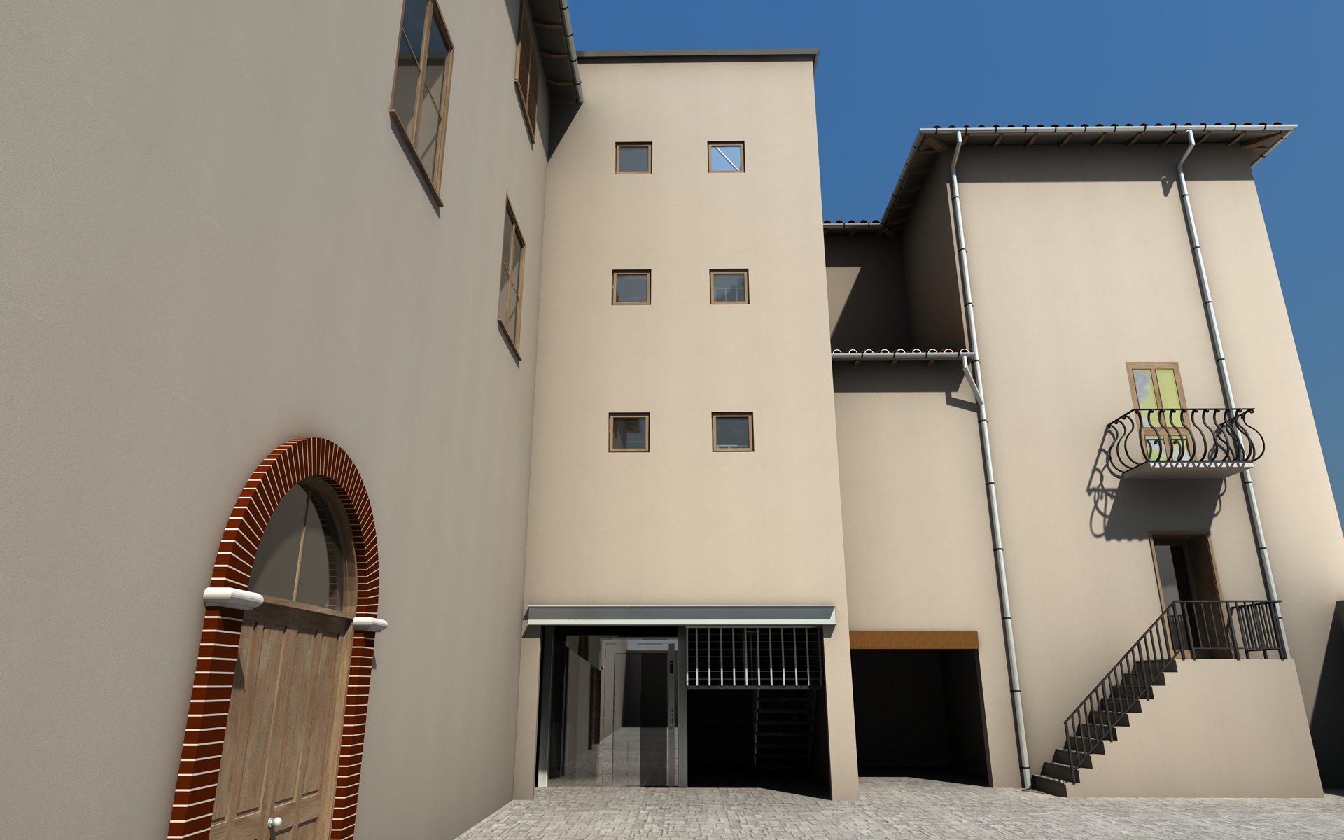 molto buono!io proverei con una vista dal basso verso l alto ad altezza di uomo.cmq se vai su cgtextures di intonaco ne trovi tante!