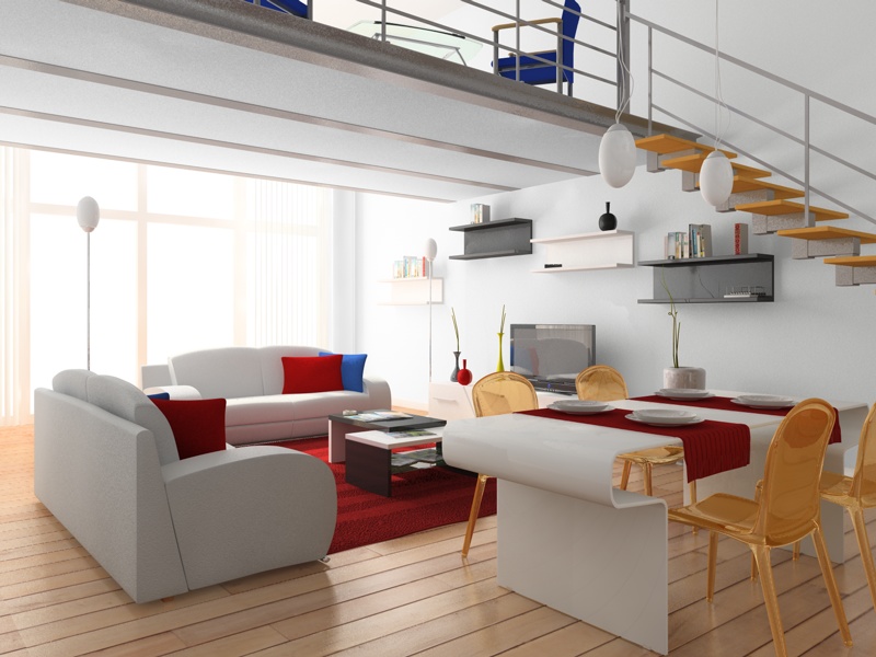 io opterei piu per l illuminazione diurna.diminuisci ancora un pochino la saturazione di alcuni materiali come la lampada.cambierei anche il parquet,e lavorerei sulle riflessioni e sugli speculari.devi anche rivedere il materiale del corrimano,perchè non rende come dovrebbe.insomma,rivedi un po tutti i materiali perche sono quelli che stonano,perche l illuminazione va bene