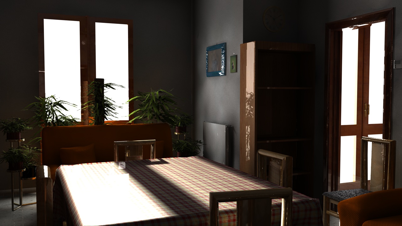 La luminosità del muro infatti l'ho ridotta a 2% giusto il necessario per eliminare le righe d'ombra che si fomano agli spigoli della stanza.