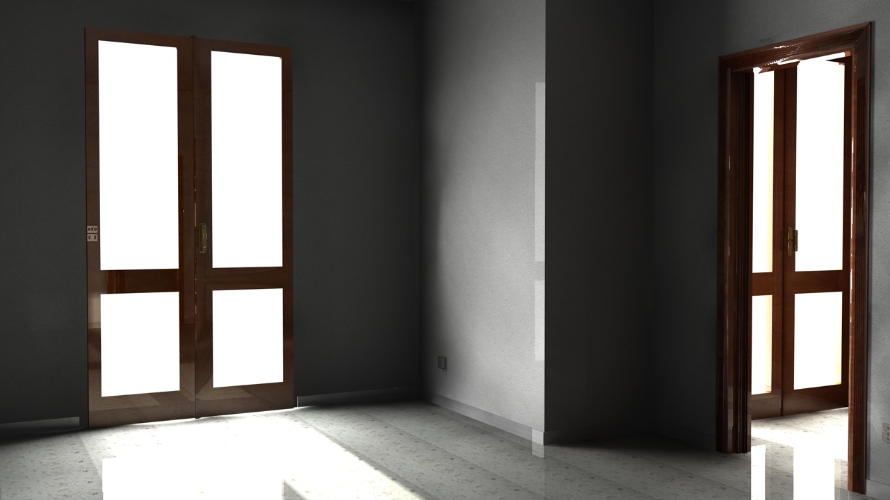 La luminosità del muro infatti l'ho ridotta a 2% giusto il necessario per eliminare le righe d'ombra che si fomano agli spigoli della stanza.
