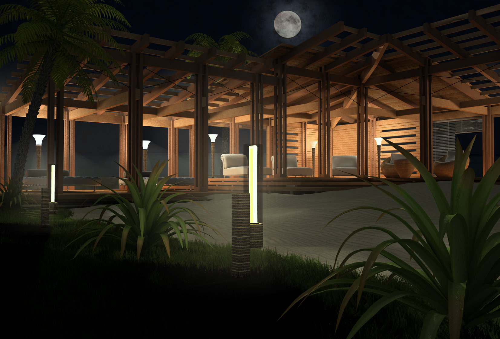 luce per illuminare la luna e una luce spot pr simulare la sua illuminazione verso il pergolato.