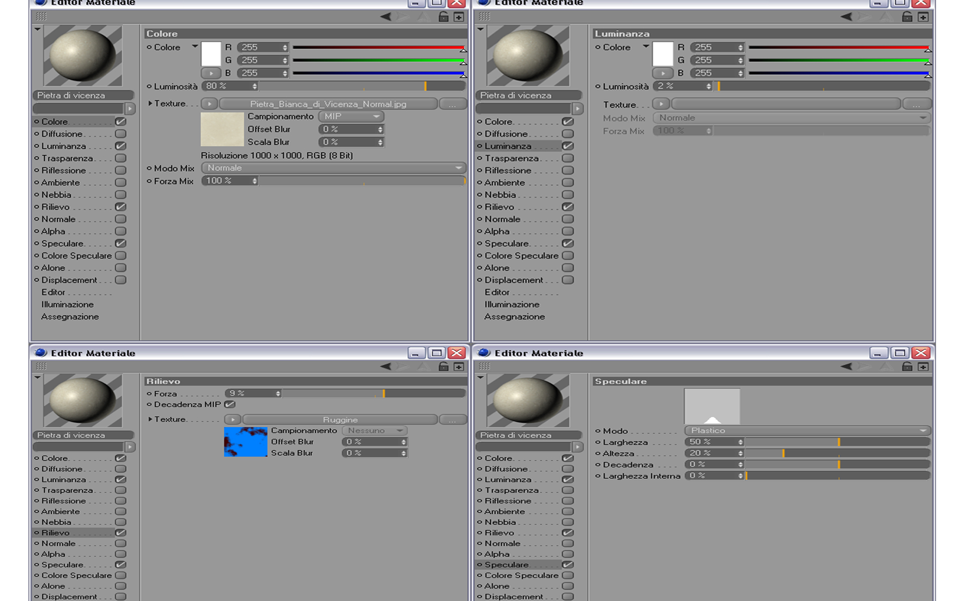 inserisco i parametri della pietra di vicenza usata per il palazzo.
