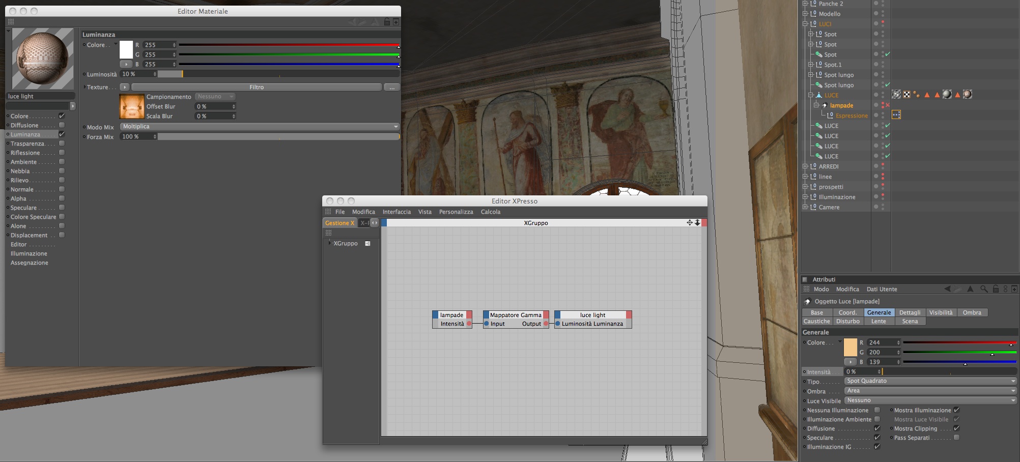 Ho fatto in modo che se aumento la luminosità di una luce, aumenta automaticamente anche la luminanza del materiale riflettore interno della lampada.
