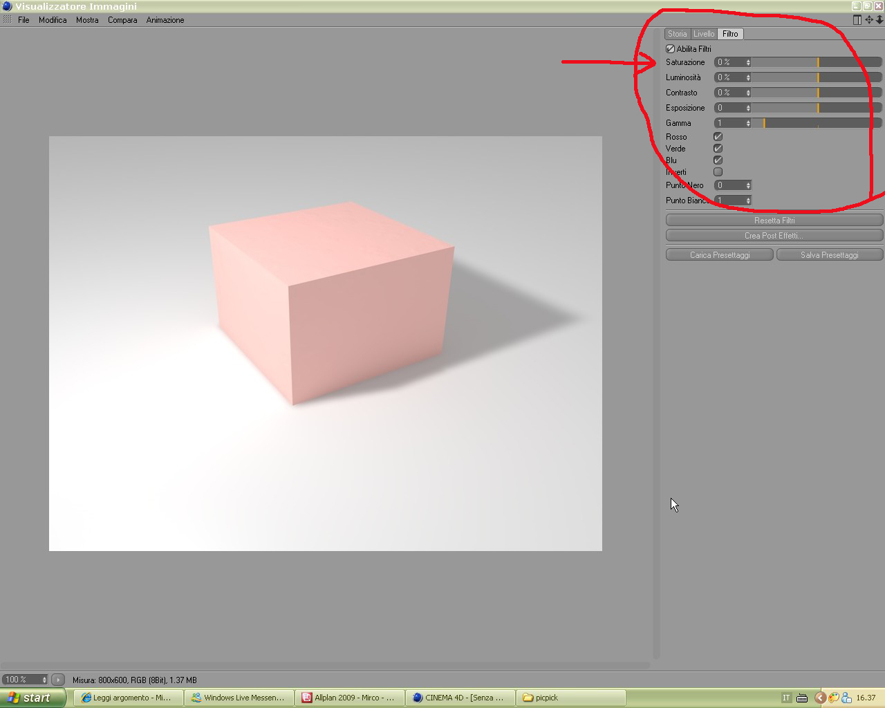 quello che mi stai dicendo mi giunge nuovo, con cinema posso modificare le immagini appena sfornate? cado dalle nuvole. cmq per le ombre sono area, cosa non ti convince di queste?