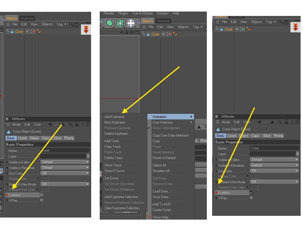 Re: CINEMA 4D accendere e spegnere livelli e registrare