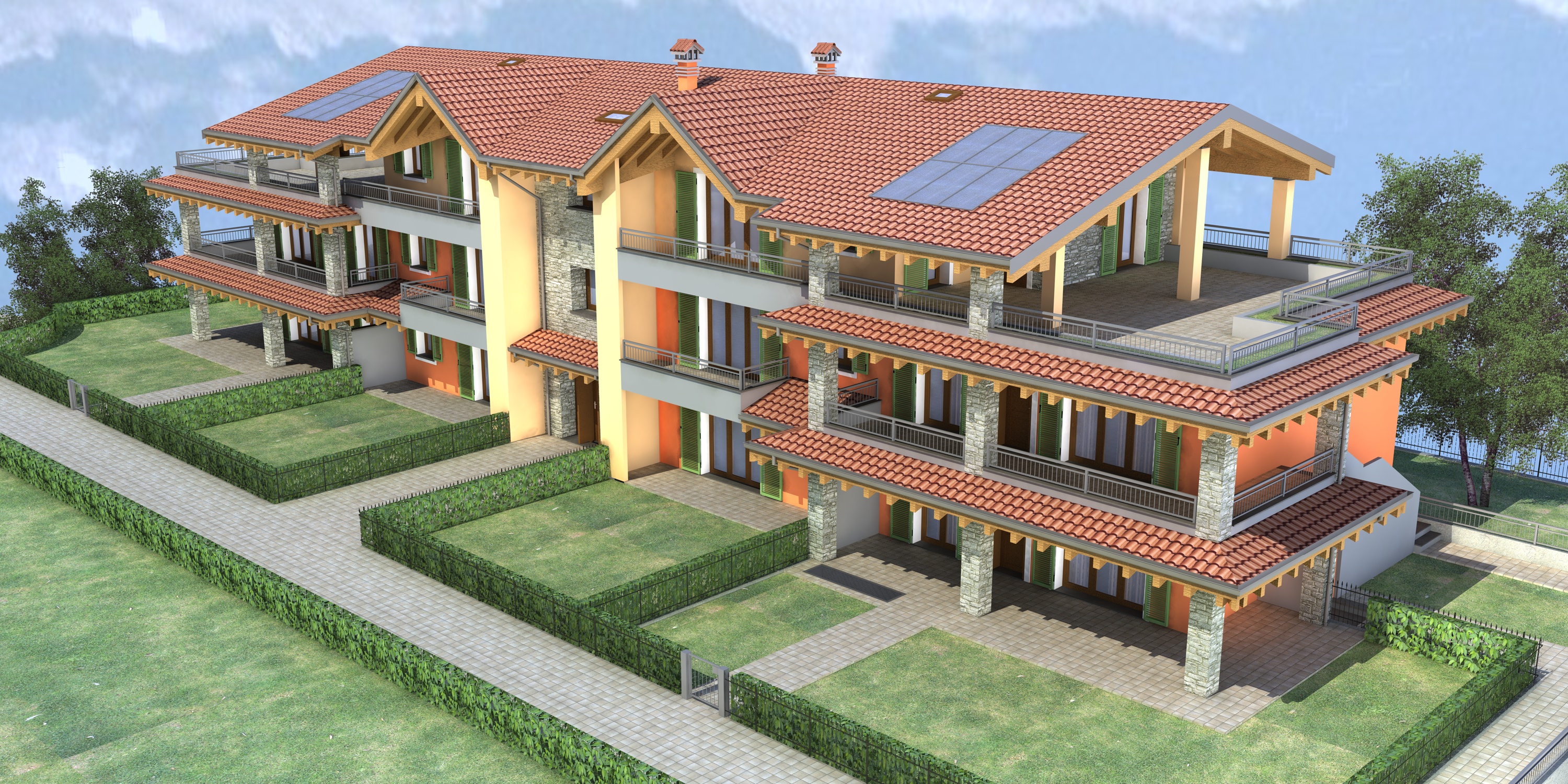 viceversa, sui materiali ci sarebbe molto da rivedere, per l'erba ad esempio hai usato una texture non ripetibile creando il simpatico effetto "carta da parati", i coppi non hanno rilievo [vista l'inquadratura sarebbe stato meglio modellarli, hai mai provato Tuilegen? anche il legno della struttura del tetto andrebbe rivisto, adesso le fibre sono orientate tutte nella stessa direzione. in generale quello che io noto è una semplificazione eccessiva nella elaborazione dei materiali.