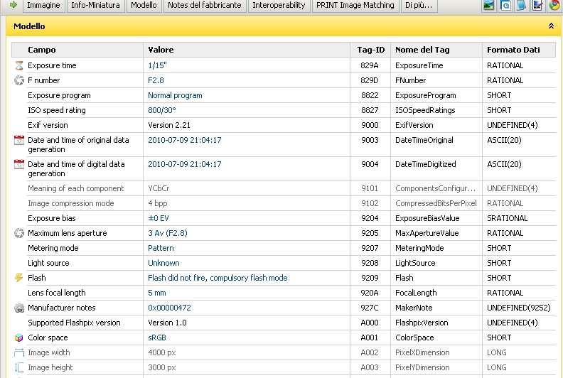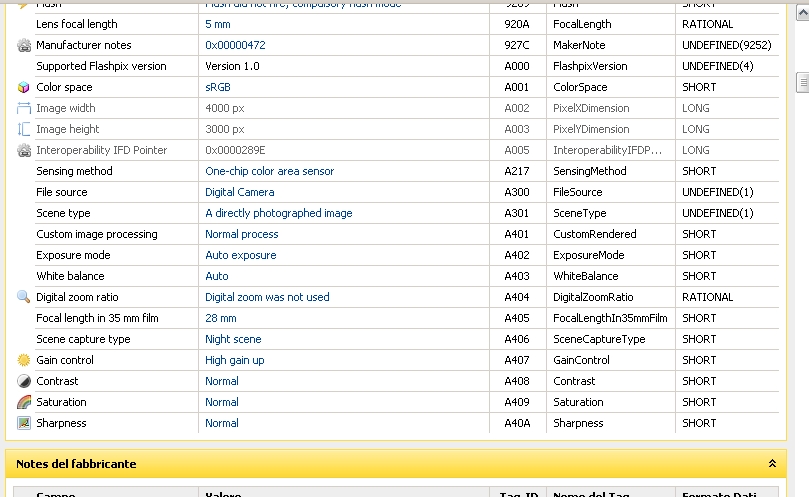 Ne approfitto per chiederti come faccio a ricavare i parametri della mia fotocamera, ti allego 3 immagini.