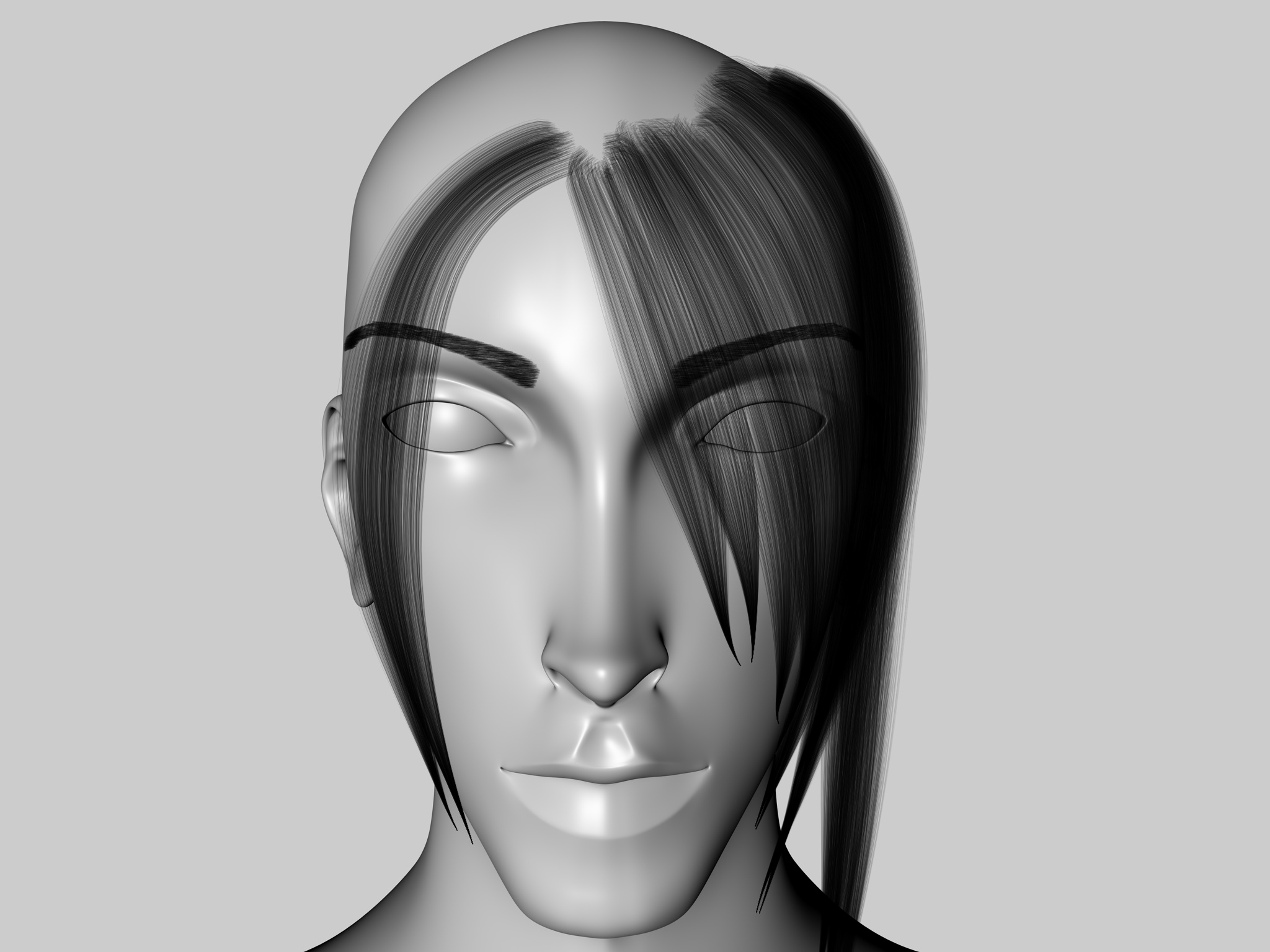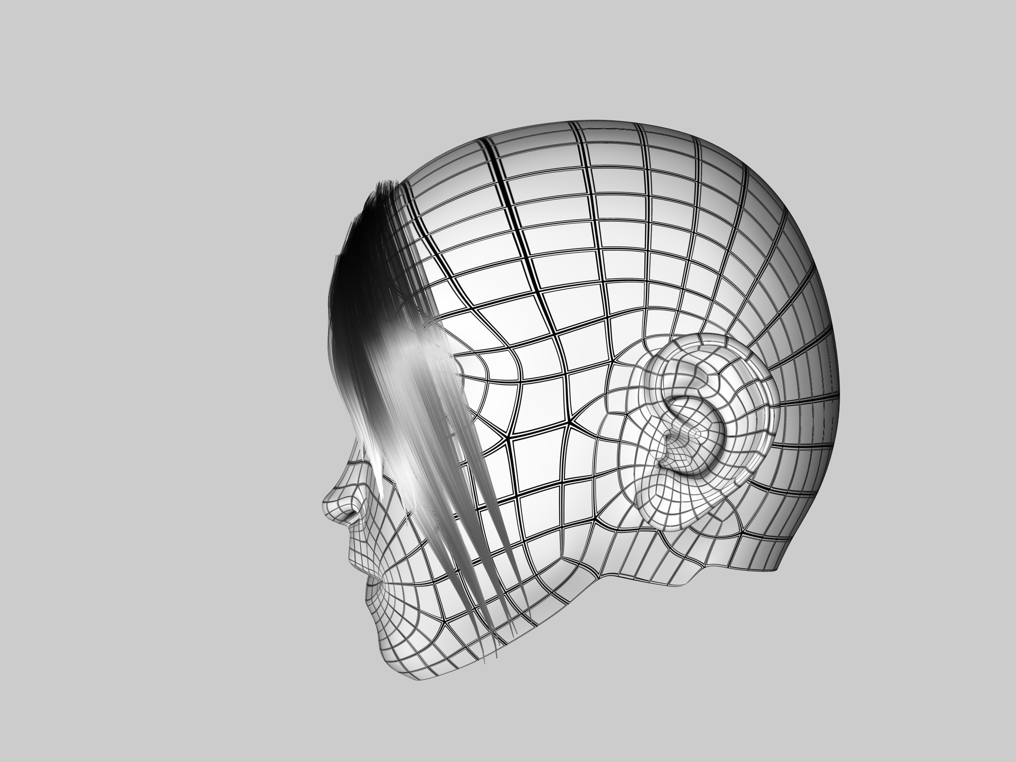 Forse dovresti andare avanti e completare i capelli, successvamente controlli nel'insieme cosa non va, comunque ti posto due immagini così ti studi bene l'effetto che cerchi.