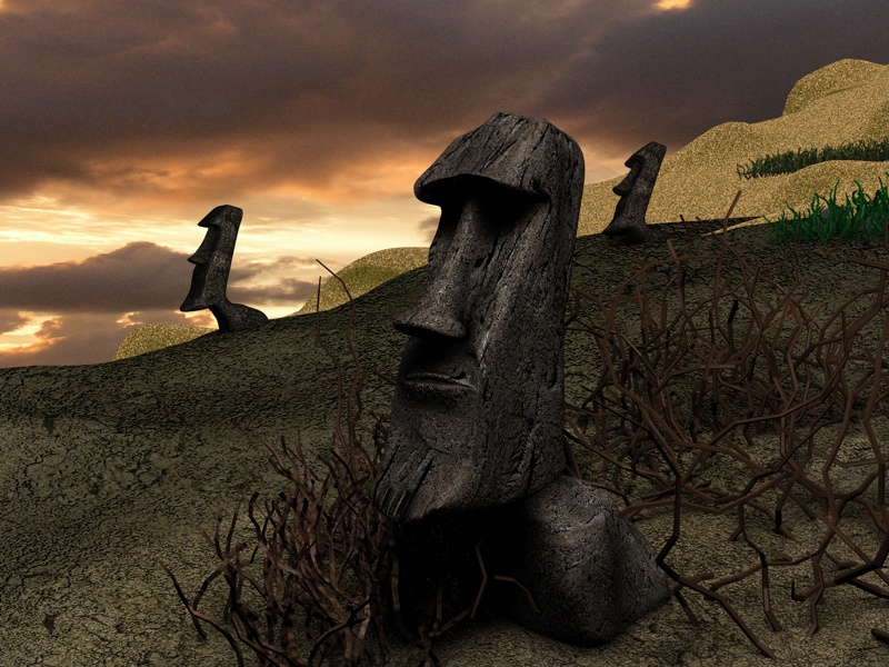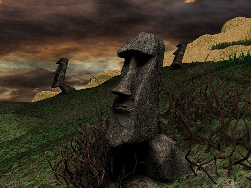 allora, ho modifivato il terreno e la texture del moai. Ora mi occupero' degli arbusti