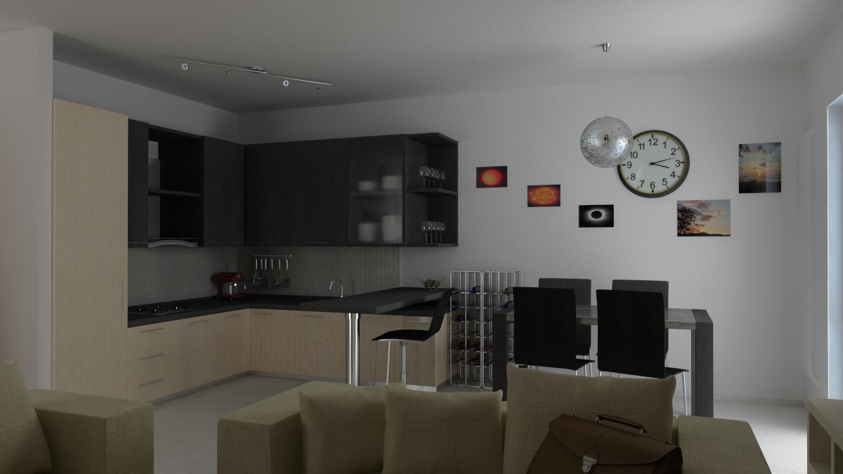 fotografie riviste, per errore erano montate al contrario ed il vetro era dalla parte del vetro, ma sia le foto che l'orologio sono appoggiate al muro correttamente come se fossero attaccate a dei chiodi.endry wrote:Ciao "Hitgracci" io non sono molto bravo però sembra che stai andando bene, rivedrei la terza immagine mi sembra che i quadri e l'orologio stanno "volando", e non si riesce a capire il piede della penisola, rivedrei il materiale del divano e tavolo.