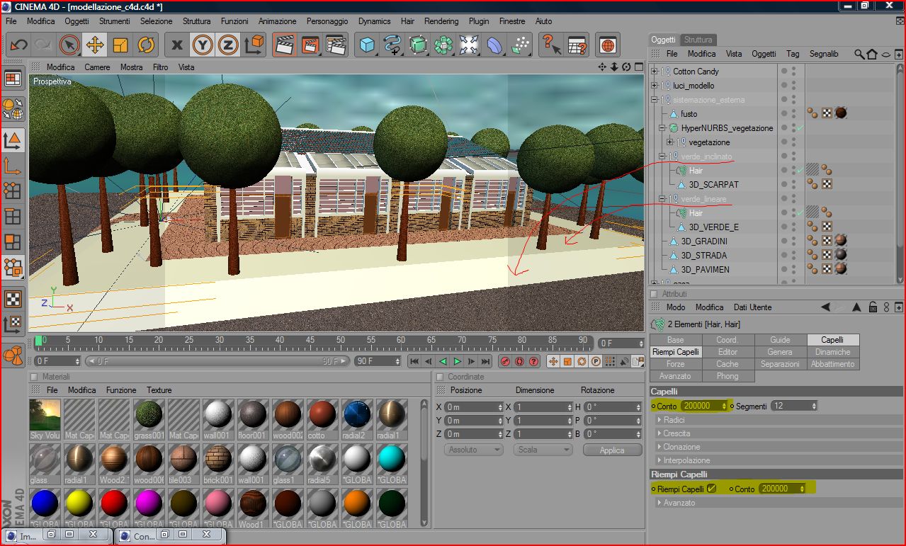 Ciao ragazzi! sto facendo un rendering (di bassa risoluzione) e ci sta mettendo piu di una mezz'ora!! . In breve sta renderizzando un progetto di case a schiera(5) con struttura frangi-sole, tegole fotovoltaiche (diciamo è un pò pesante come file). Nonostante questi oggetti caricati, prima di inserire il comando HAIR per l'erba, il rendering aveva tempi molto brevi. Dopo aver messo l'erba, ho inserito (per avere una densità maggiore dei filamenti di erba) nei comandi CAPELLI : 20000 e in RIEMPI CAPELLI : 20000.