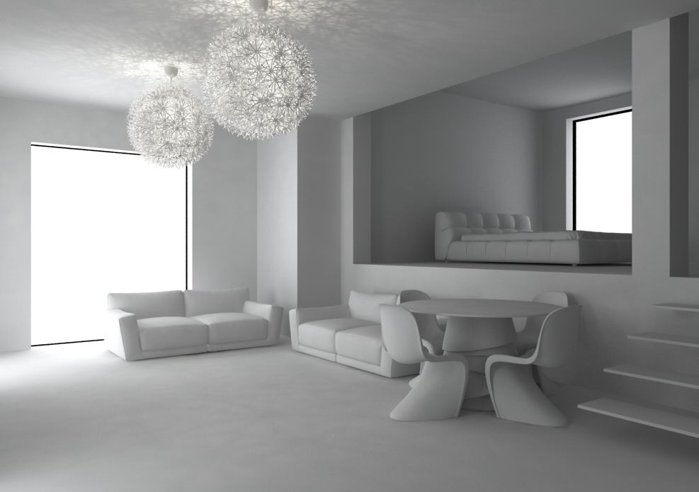 un oretta libera questo pomeriggio e mi son messo a giochicchiare con un interno. Spero poi di avere il tempo di finirlo...