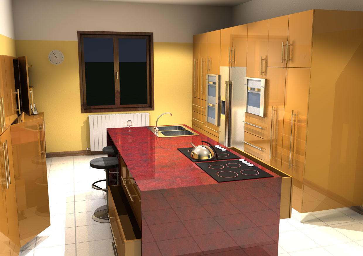 per rispondere a nicola sui materiali riflettenti: piccola premessa è una cucina per un privato a cui è piaciuta molto l'idea ma nonostante i consigli ha voluto far di testa sua per quanto riguarda i materiali... ho insistito ma non c'è stato nulla da fare...