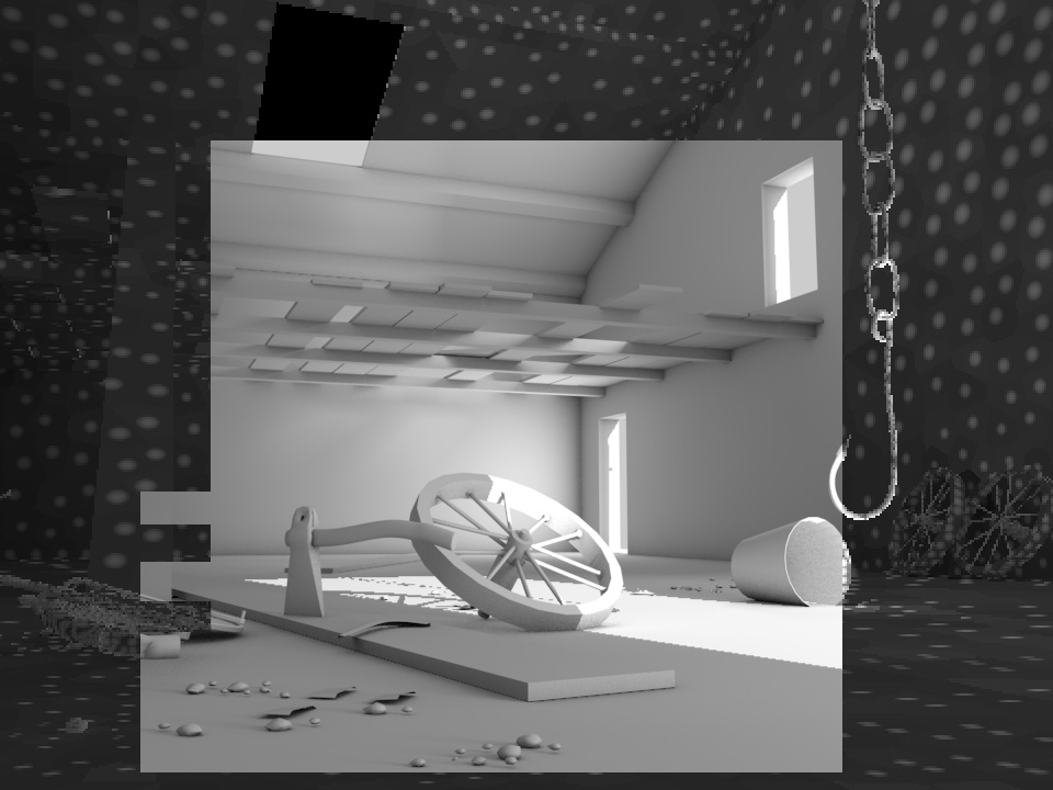 Avrei messo volentieri della polvere fluttuante nell'aria, visibile dentro il raggio di sole che entra nella stanza, magari avrei abbassato la fonte luminosa alzando il raggio all'interno.
