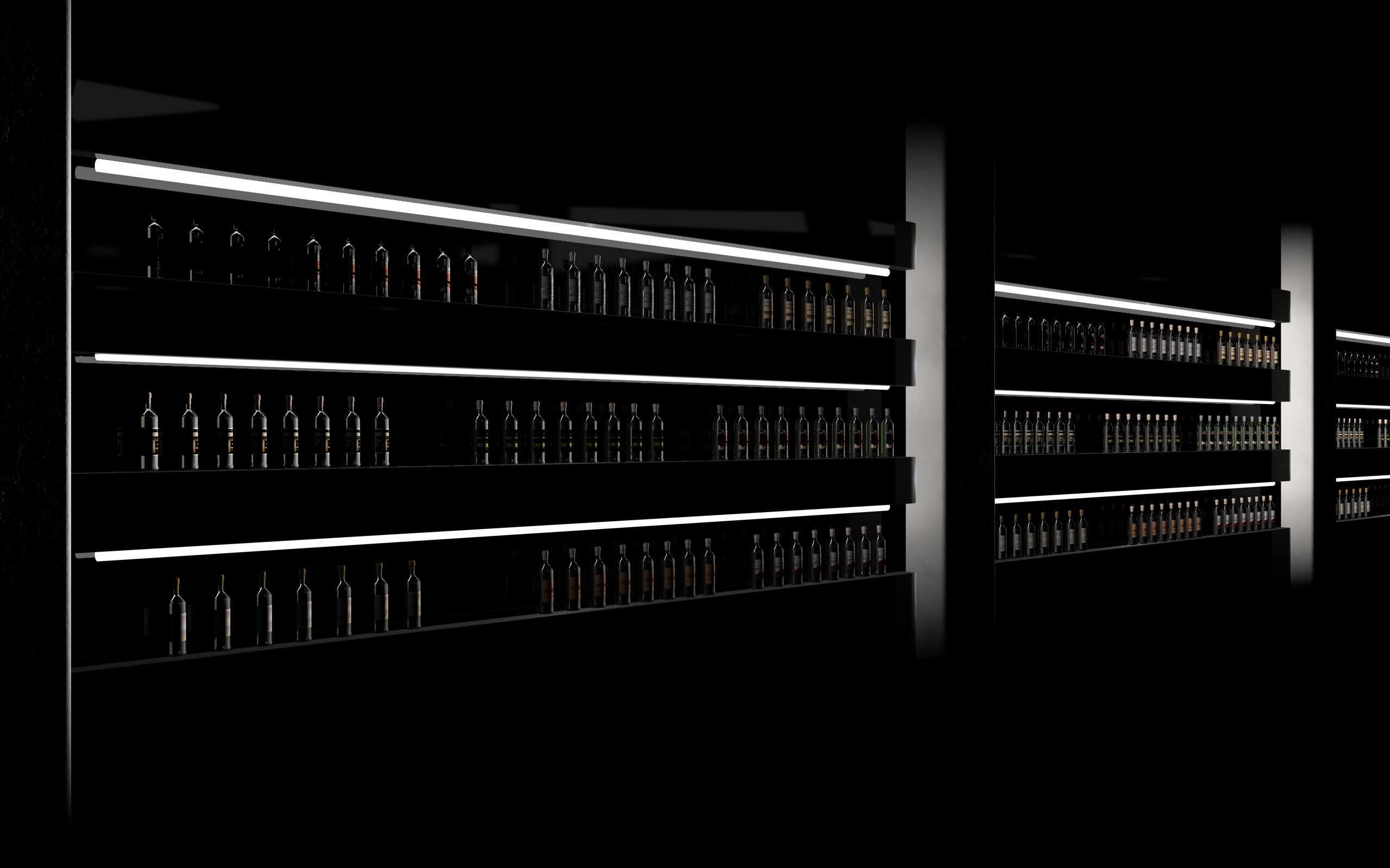 Forseforse ce l'ho fatta...questa è una vista senza le bottiglie altrimenti finiva dopodomani...quella con le bottiglie la manderò stasera dal pc di casa che ci mette decisamente meno...e magari metterò anche l'ombra ai vetri altrimenti si vede sulla parete retrostante solamente quella prodotta dal tappo e dall'etichetta...