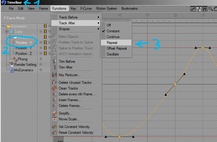 P.S. Io ci vado anche così : fai tasto destro del mouse sugli attributi del tag allinea alla spline ( poi segui il percorso ANIMAZIONE\MOSTRA TRACCIA ) e sulla timeline clicchi su chiave lineare per rendere l' animazione fluida una volta continuata... infatti se clicchi ( sempre sulla timeline ) sulla voce posizione ( del tag allinea... ) negli attributi ti apparirà quello schemino che vedi nell' immagine