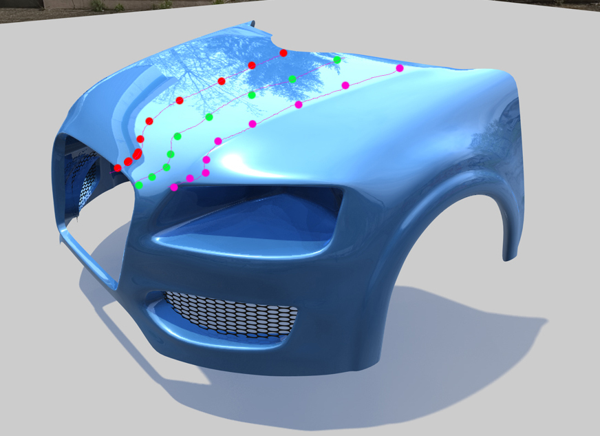 allora, devi mettere innanzitutto le blueprint di modo da combaciare tra loro con le misure, e poi vai nella vista laterale e fai i punti del cofano (per esempio) poi li prendi e li copi e poi li sposti a seconda della forma che hai in pianta, cosi hai i tuoi punti e lavori con lo strumento ponte.