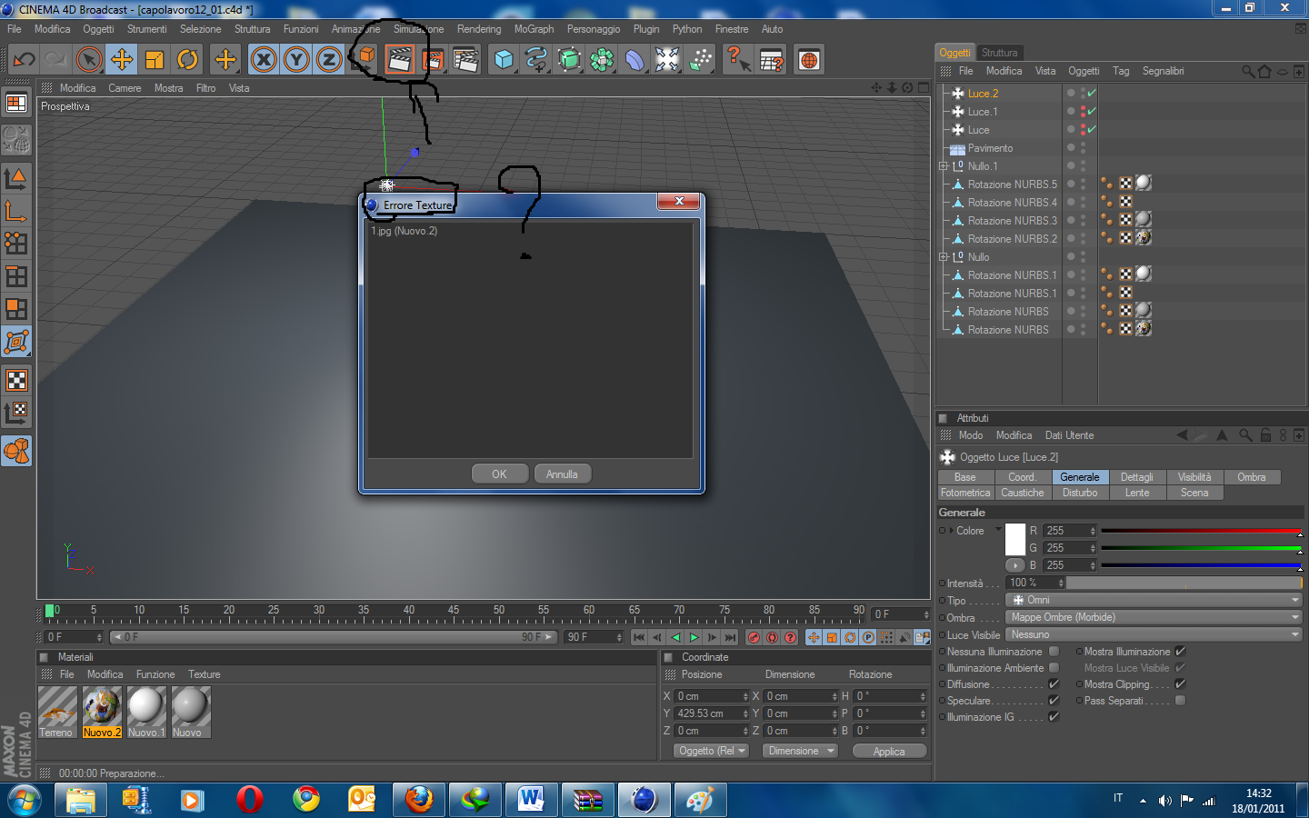 significa che non trova l'immagine che hai associato al canale colore del tuo materiale, e che devi inserire il percorso per andarla a prendere