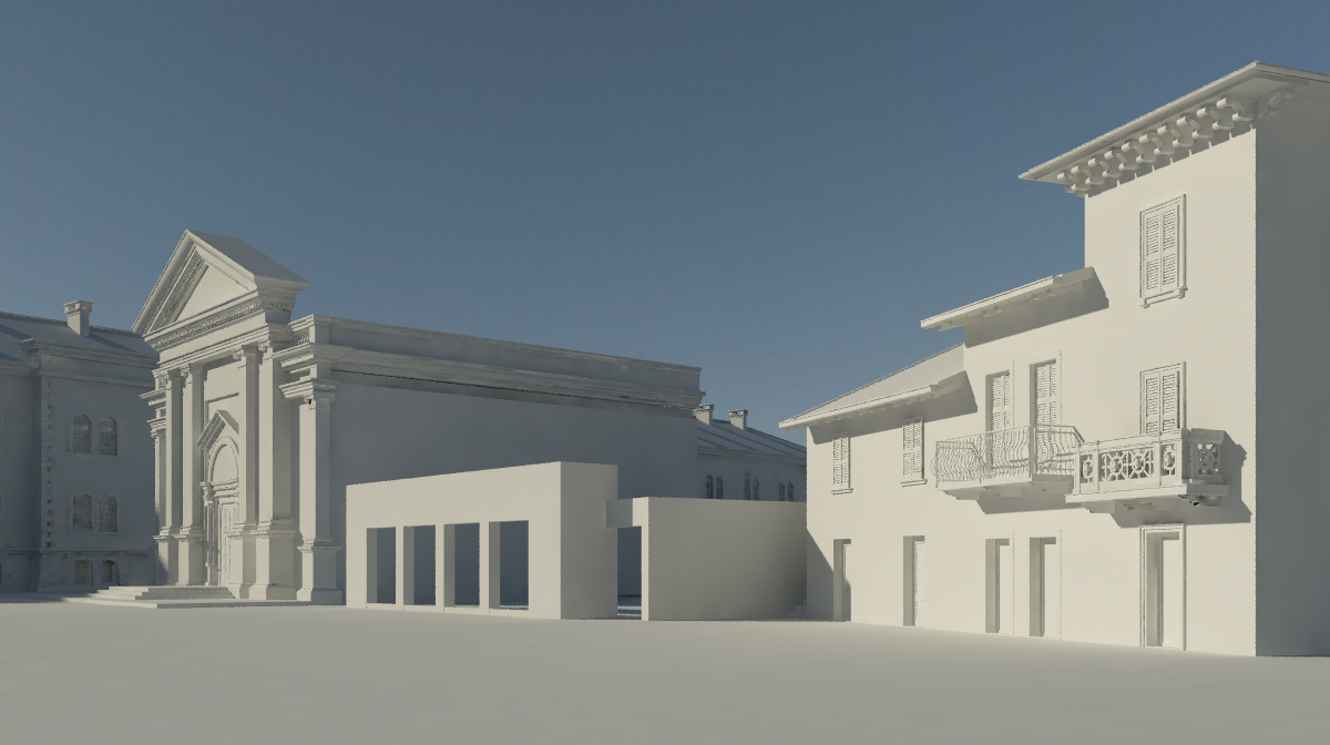 ciao ross...ci ho messo circa 2 settimane anche perchè mi son dovuto creare tutto da zero senza prospetti ma solo con piante approssimative da rilevare...ho modellato tutto in allplan ma ora userò c4d per le parti di masse verdi dei terrapieni.... i materiali sono con texture nel canale bump..il resto neutro...sono a metà del lavoro.Ross wrote:Complimenti! Molto pulito!