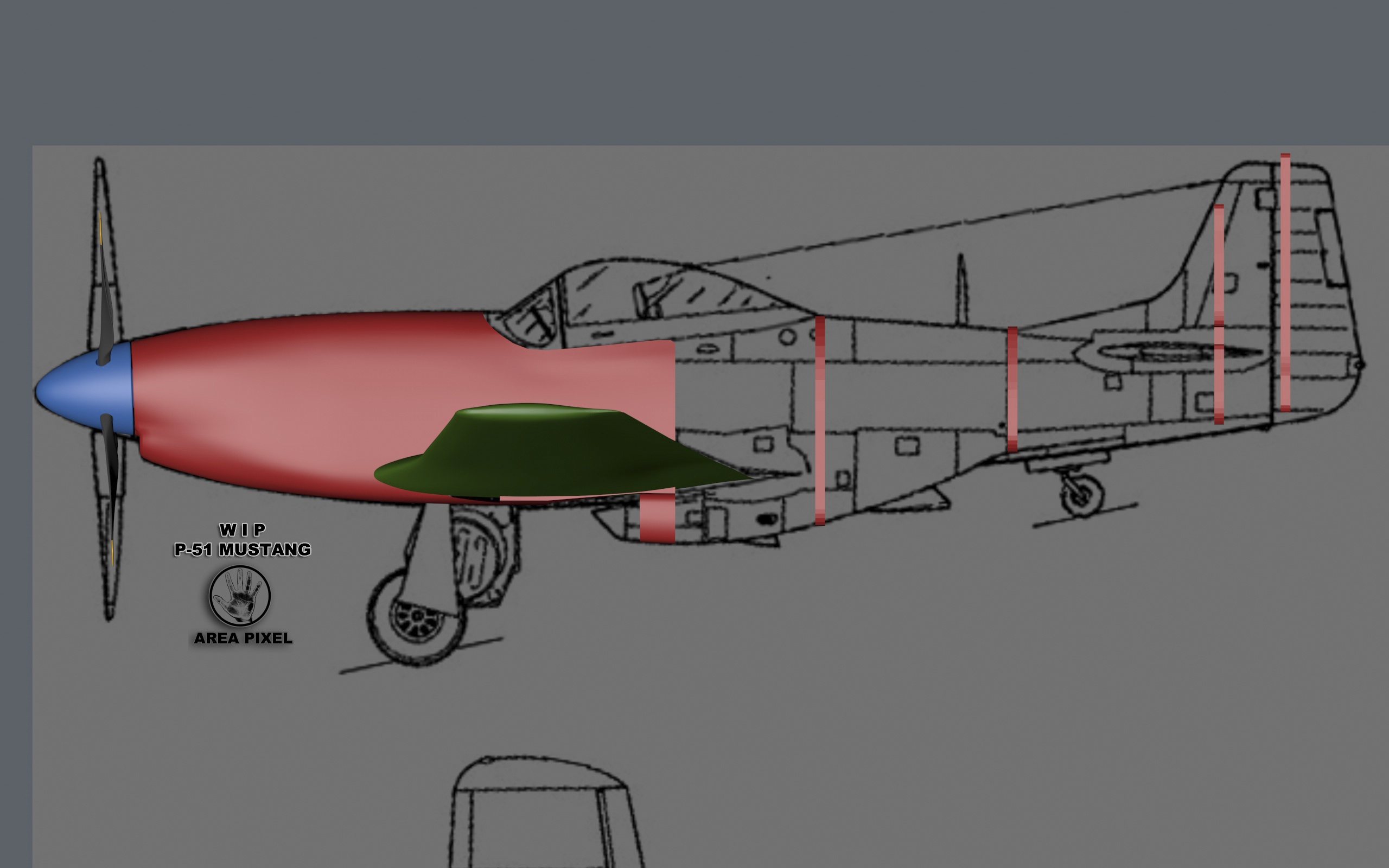 Dunque sono un appassionato di aerei, e di WIP di macchine si vedono troppi in giro, quindi il mio oggetto è un aereo della seconda guerra mondiale, il North American P-51 Mustang, al mio avviso l'aereo più elegante della storia.