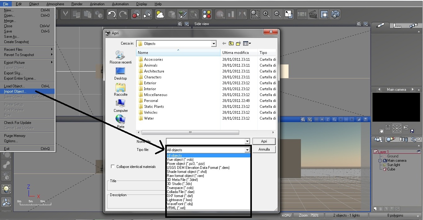 62VAMPIRO wrote:Ah dimeticavo: è possibile fare il contrario. Cioè: aprire Vue, "costruire" la scena in Vue e poi esportarla per Cinema completa di textures, athmosphere ecc....ecc...... Infatti Vue provvederà a creare un file .c4d. A parte vengono salvate le textures, i cieli e quant'altro...............